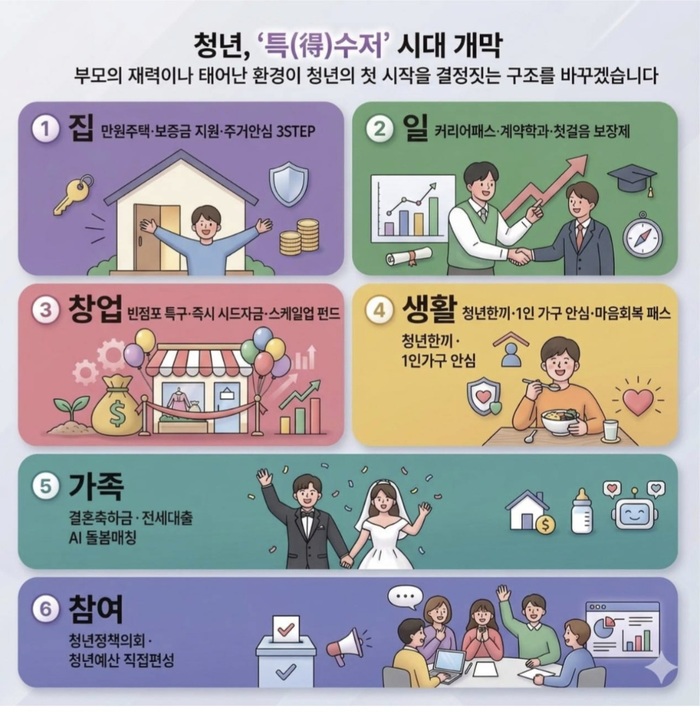 또한 고물가 시대 청년들의 식비 부담을 줄여줄 ‘한끼 제휴 네트워크’를 가동하고, 1인 가구를 위한 안심 서비스와 정신건강 지원을 위한 ‘마음회복 패스’ 등 촘촘한 복지 안전망을 약속했다.