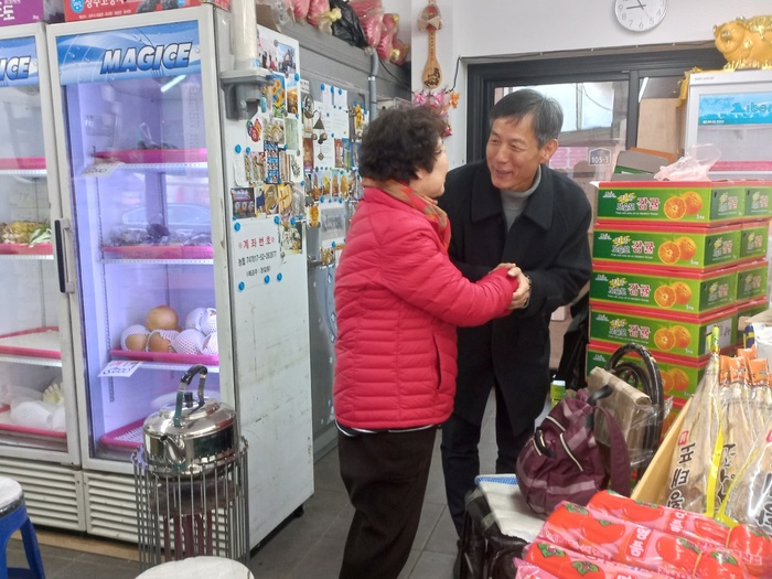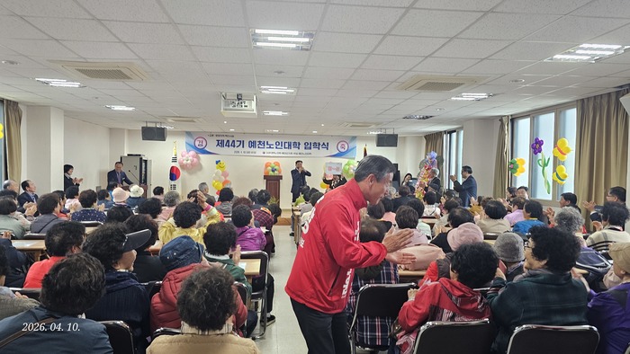 ![]() ▲ 조동광 예비후보가 제44기 예천노인대학 입학식장에서 주민들과 인사를 나누고 있다. (사진=조동광 후보 측) © |