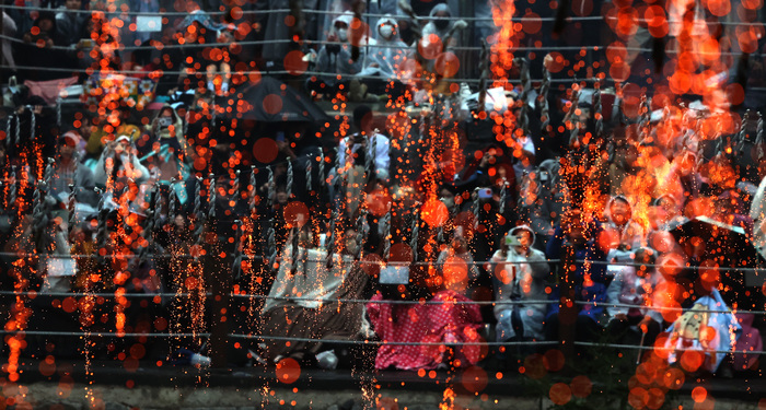 ![]() ▲ 부처님오신날이자 어린이날인 5일 오후 경남 함안군 함안면 무진정에서 '제32회 함안낙화놀이 공개행사'가 열리고 있다. 숯과 한지를 꼬아 만든 낙화봉 수천 개를 줄에 매달아 놓고 일몰 무렵 불을 붙이는 민속놀이다. 2025.5.5. © |